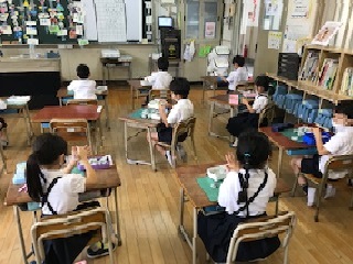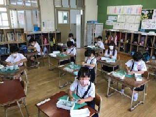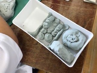 1年生の教室をのぞいてみると、粘土を使って「お弁当作り」をしていました。