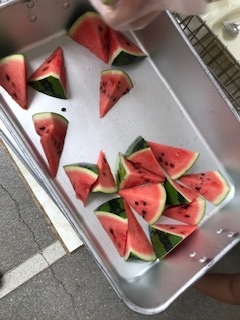 夏ですね。すいかが出ました。年に1回のメニューになります。おいしそうに食べている子やたねに苦戦している子と、いろいろでした。