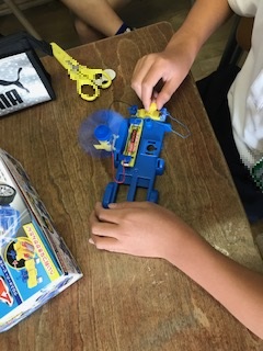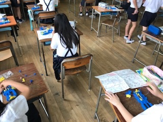 昨日は組み立てた後、乾電池を入れてプロペラが回るかどうかを確認していました。