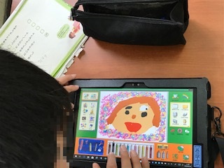 4年生がその中の一つを使って、担任の先生の似顔絵を作成していました。それぞれが各機能を使いながら、楽しそうに活動していました。