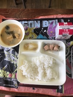 今日の給食は「ごはん・牛乳・さけのつけ焼き・みそ汁・とうがんの煮もの」でした。