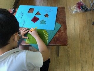 おしゃれなステンドグラス制作中(2年生:7月14日)