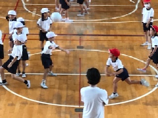 避難訓練の後、4時間目には体育でドッジボールをしました。