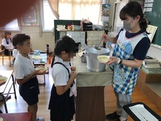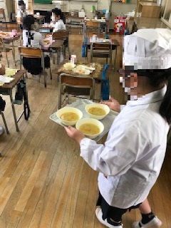コーンスープも人気で、増やしてほしい子が列をつくっていました。