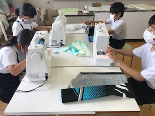 暑い中でしたが、がんばっていました。休業中に練習してきた成果もあって、手縫いについては、かなりスムーズなようで、順調です。ミシンの扱いにも少しずつ慣れてきているようですよ!