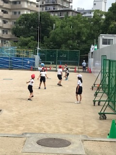 4年生の体育では、「ベースボール型ゲーム」に取り組んでいます。