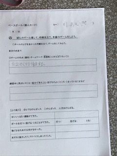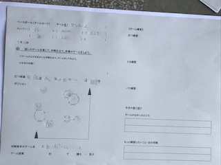 チームで活動しますが、自分のめあても考えます。練習方法や作戦を考えたり、打順やポジションについて話し合ったりします。ゲーム後には、チームで振り返りもします。