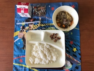 昨日の給食は「ごはん・牛乳・肉じゃが・とら豆の煮もの・アーモンドフィッシュ」でした。
