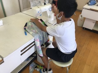 ミシンの使い方にも慣れ、テキパキと動けるようになってきました。まだまだ苦戦している子もいますが、暑い中よくがんばっています!!