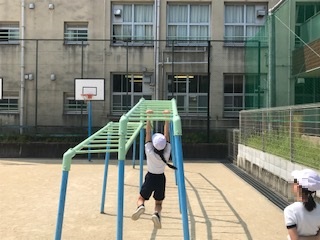 雲梯にチャレンジする子もいました。何度も取り組む姿が見られました。素晴らしいです。