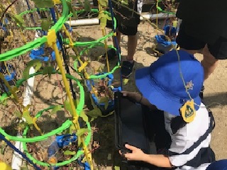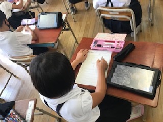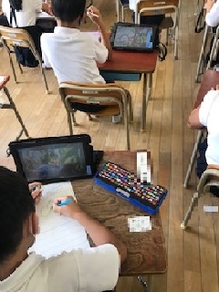 暑い中での観察は熱中症の心配もあります。ICTが学習活動に役立つ場面でした。