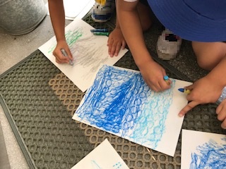 マット等の上に紙を置き、クレパスで色を付けると、マットの凸凹が模様のように浮かんできました。
