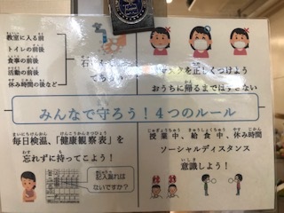 2学期から各教室に、「みんなで守ろう!4つのルール」ポスターを掲示しています。1学期から継続して指導していることを「見える化」したものです。