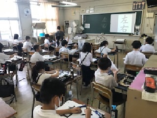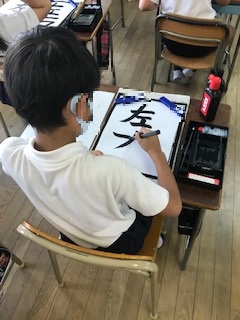 4年生の書写は毛筆の時間。「左右」を書きました。