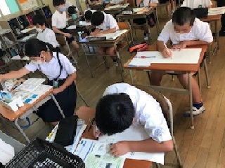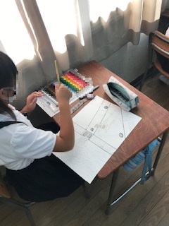 ワークブックで学びを深め、未来に向けてのエコメッセージを考えました。自分なりのメッセージを絵画で表現します。思いがしっかり反映する作品を期待しています!