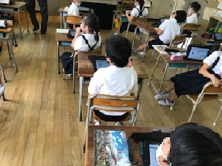 2年生がタブレット端末を使って、生き物調べをしていました。カマキリに、カエル、アゲハチョウ、ネコ等々、タブレットの操作に苦労しながらも意欲的に取り組みました。