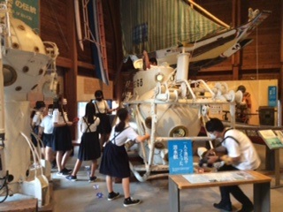 活動班ごとに館内を回ります。一番人気は中に入ることができる潜水艦。実際に海の中に潜って活躍した実物です。子どもたちも代わる代わる入っていたようです。