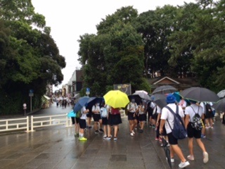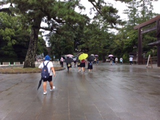 予定通り、おかげ横丁に到着です。小雨が降ってはいますが、傘をさすほどではないようです。