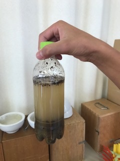 理科で学んだ「地層」ができる仕組みを実際に自分たちで作ってみました。