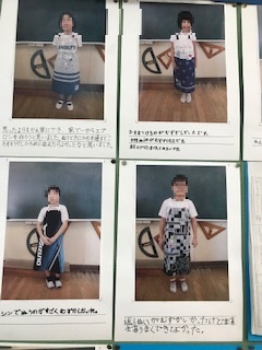 5年生の教室掲示板に、素敵なエプロンを身に着けた子どもたちの写真が掲示されていました。子どもたちが家庭科の時間に制作したエプロンです。それぞれの感想もあって、素敵な掲示でした!