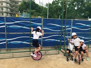 練習を重ね、乗ることができる子もいました。できないことにチャレンジすることは大切ですね。体力アップを目指して、がんばろう!!