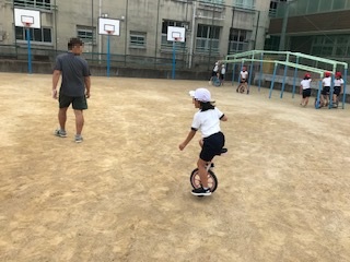 一輪車にチャレンジだ!(2年生:9月14日)