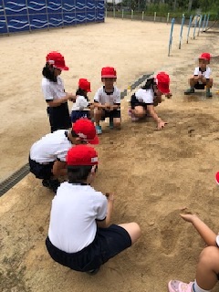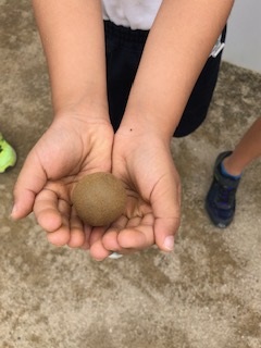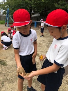 2日前になりますが、1年生は、学校の砂山を使い、砂団子(泥団子)を作りました。