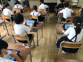 タブレット端末の中にある、「発表ノート」を使って、自分で撮影したさつまいもの写真を加工したり、絵を描き足したりしました。