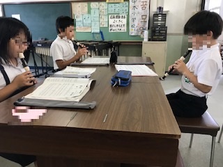 4年生は音楽室で、リコーダーの演奏をしていました。しっかり感染対策を講じながら取り組んでいます。