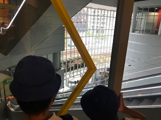 また、各階に「偏光ガラス」があり、そのガラスを透して見ると絵が浮かび上がります。これにも子どもたちは驚いていました。