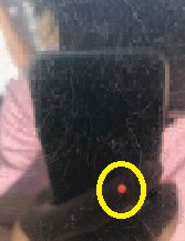 子どもたちは普段は直接見ることができない太陽を見ていたのです。遮光板を通してなら、見ることができます。画像の黄色枠の中、オレンジ色のものが太陽です。