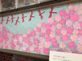 10月は2年生が担当です。かわいらしいコスモスがたくさん咲き、赤とんぼが優雅に飛んでいます。
