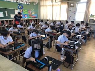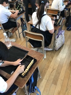 3年1組の教室では、朝の学習時間中から、書写の準備が行われていました。