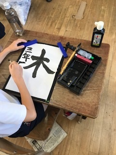 すった後の墨汁で文字を書いてみると、少々薄くなったようです。やはり墨をすって使うのは難しいのですね。昔の人々は、それが当たり前の生活だったと考えるとすごいですね。
