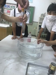 この結果から、炭酸水には二酸化炭素が溶けていることがわかりました。途中、失敗した班もありました。それも実験の面白さです。やはり、実験や観察をして、きちんと確かめることは大切ですね!