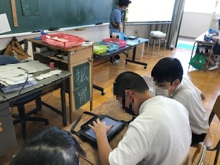 この「mBot」をどのようにプログラミングすると動かすことができるのか、ロボット本体の準備とタブレット端末内のアプリの準備を並行し、グループで協力しながら取り組みました。初めて触るロボットにドキドキワクワクの6年生。説明を聞きながら、チャレンジしました。楽しそうに活動していました。果たして「mBot」は無事に動いてくれたのでしょうか?