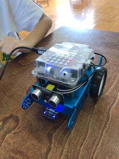 昨日、6年生がプログラミングロボット「mBot」を用いて、プログラミングについて学びました。