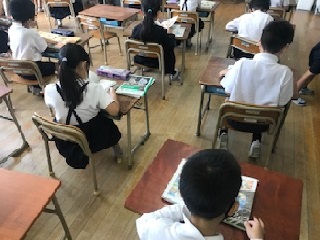 子どもたちが15分の読書をする時間です。心を豊かにしてくれる読書。集中して読んでいる子どもたちでした。