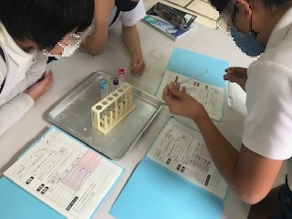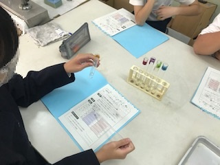水溶液の仲間分けについて学習中の6年生。今日は仲間分け実験のトリを飾ります。