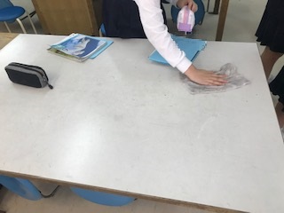 机をしっかり拭いて、器具も洗います。分担して、スピーディーにできました。