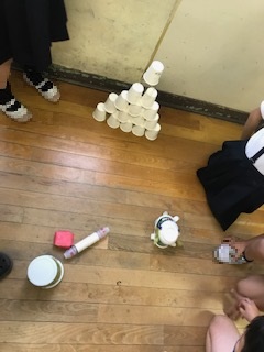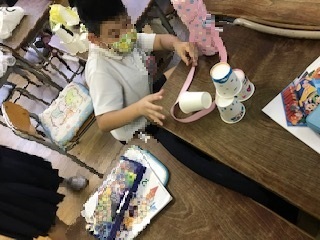 2年生の教室が「おもちゃランド」に変身。グループごとにおもちゃ作りに励んでいました。楽しそうでした!!