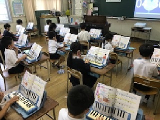 1年生は、鍵盤ハーモニカの練習をしていました。演奏時の運指はぎこちなさもありますが、一生懸命に取り組んでいました!