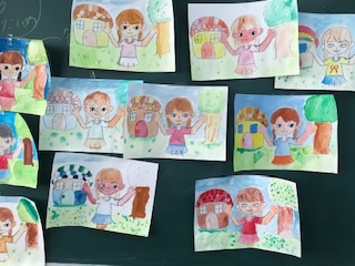 絵は担任の先生が描き、子どもたちが色塗りをしたとのこと。つまりは、色塗りの練習?塗り絵?