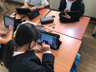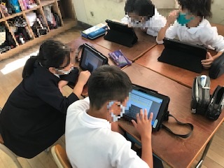 4年生のもう一クラスでは、コラボノートを進めていました。タブレット端末に今年度より入れたアプリになります。