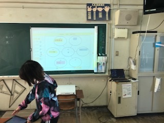 今回はイメージマップを使って、一つのテーマに対して、それぞれが思い浮かべたことを入力し、広げていきました。子どもたちは操作に慣れてきています。