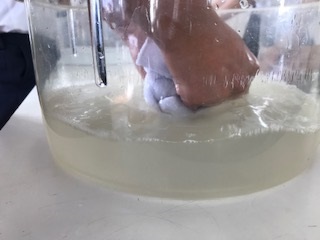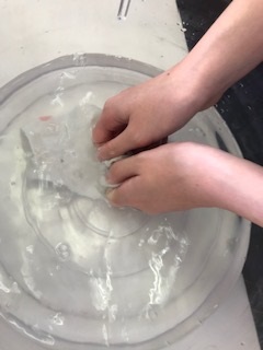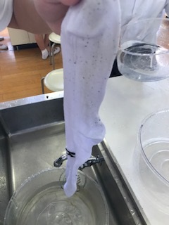 6年生、洗濯してみました。靴下です。洗剤を少し入れた水の中で靴下をもみ洗い。その後、2回のすすぎ。すると、汚れが結構落ちていました。