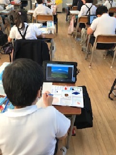 タブレットも活用しながら、色を作り、丁寧に塗っていきます。