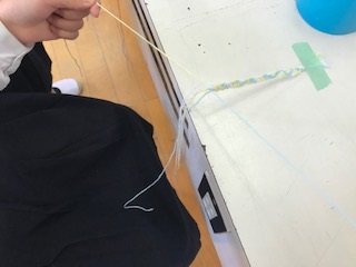 ミサンガやカードケース等を作っています。色の組み合わせやサイズ等も考えながら楽しそうに活動していました。