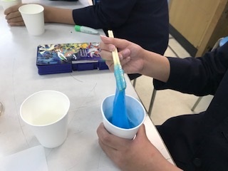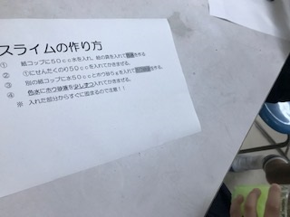 せんたくのりやホウ砂を使って作ります。子どもたちは作りながら、「見て見てー」と笑顔でした。