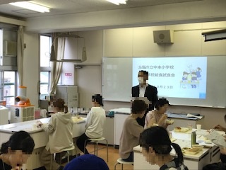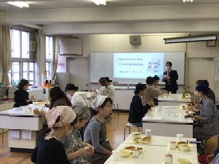 23日、子どもたちがおいしい給食に舌鼓を打っている頃、家庭科室でも、給食のよい香りが漂ってきました。
